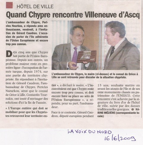 Les Ambassadeurs de Chypre ont été reçus 3 fois à Villeneuve d'Ascq pendant ses mandats européens