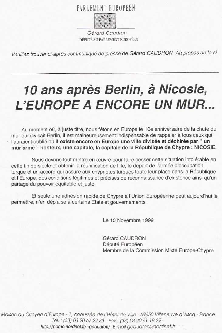 Gérard Caudron soutient Chypre depuis toujours